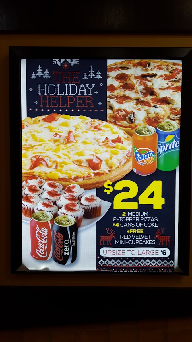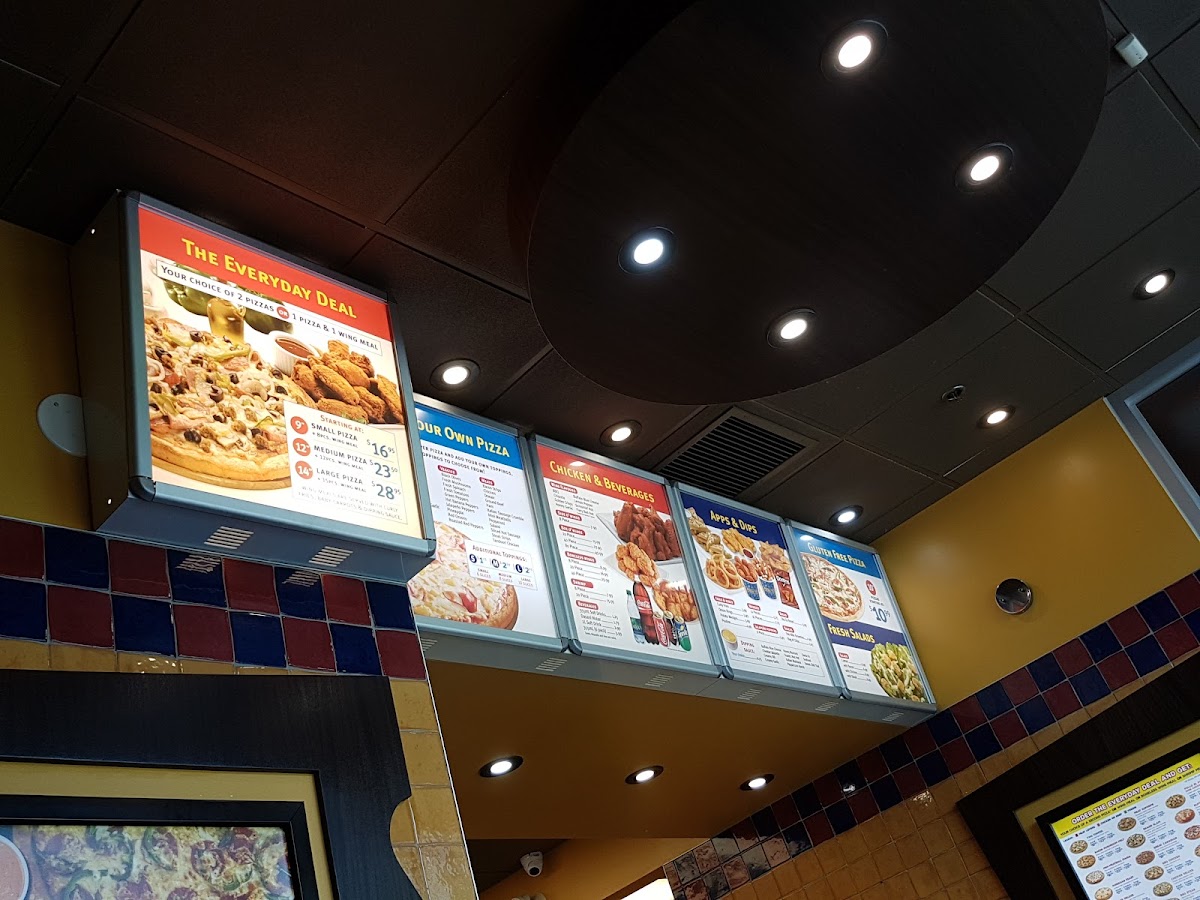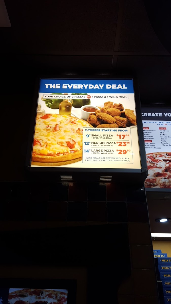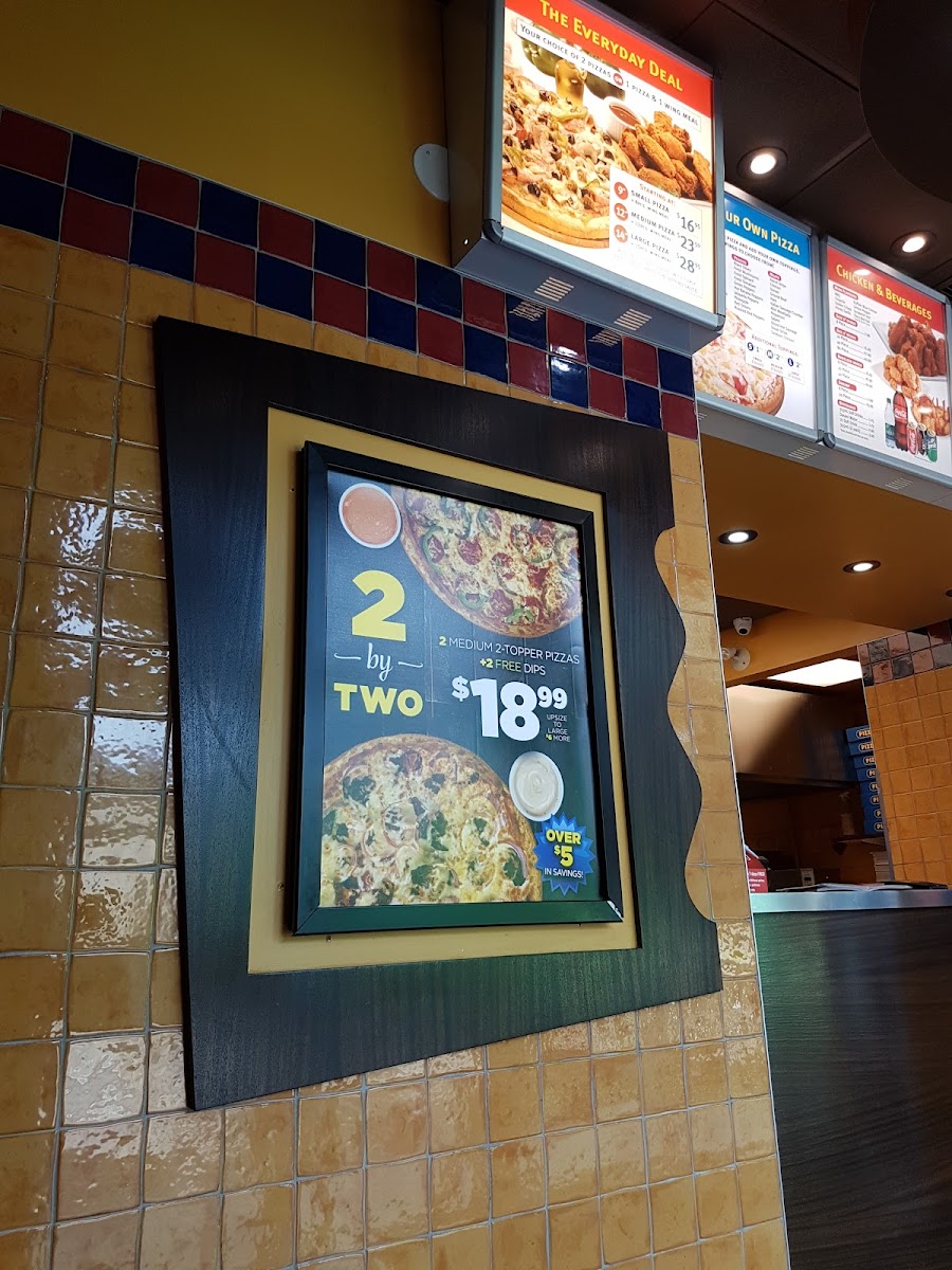 Best pizza in town without spending much money. Friendly service. Atmosphere is part of the review, I guess. It's average. You dont sit down to eat. Get in and get out.